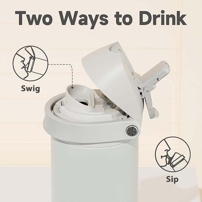 - 2-in-1 Lid, Sip or Swig: Features a flip straw for easy sipping and a push-button spout for quick swigging; stay hydrated your way — at the gym, on the go, and beyond