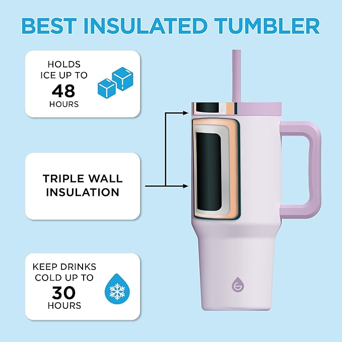 GROSCHE ASPEN 32 oz Tumbler with Handle and Straw. Extreme Insulation, Classy Design, Built to Last Insulated Stainless Steel Tumbler with Handle, Lid and Straw - Lavender