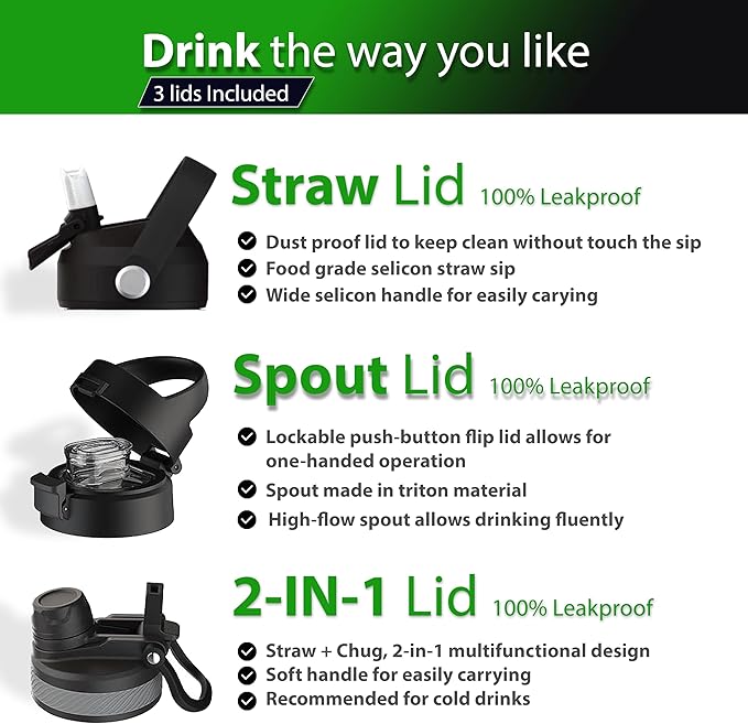 - Special Feature : Double-Walled Insulation for Hot & Cold Drinks, Durable & Leak-Proof, Dust-Proof & BPA-Free, Protective Sleeve & Cleaning Brush Included, Triple-Lid Variety (Straw, Spout & 2-in-1) Double-Walled Insulation for Hot & Cold Drinks, Durable & Leak-Proof, Dust-Proof & BPA-Free, Protective Sleeve & Cleaning Brush Included, Triple-Lid Variety (Straw, Spout… See more