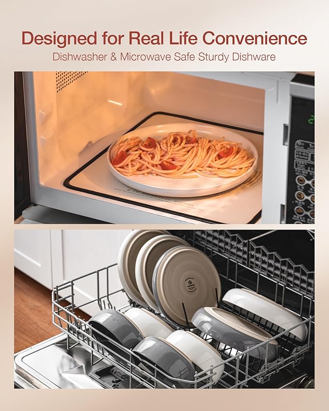 - 【DISHWASHER AND MICROWAVE SAFE】Our dishes have passed microwave and dishwasher safe testing at internationally accredited laboratories. Each plate and bowl is dishwasher safe and microwave safe.