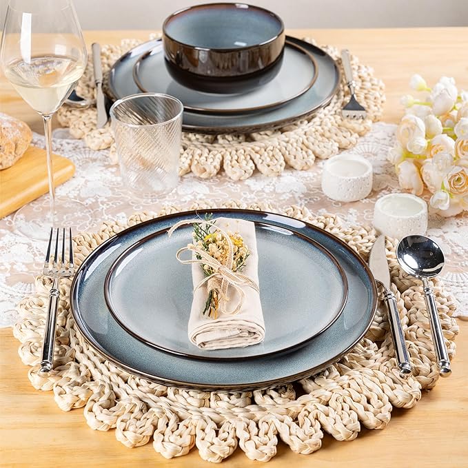 - 【LEAD FREE EAT SAFTY】The ceramic dinnerware is created through a twice-fired kiln process using 100% natural, lead-free materials. Each piece is fired at high temperatures to form a smooth, glossy glaze, ensuring safe dining. Its design combines functionality with enhanced safety and durability compared to standard dinnerware.With this dinnerware set, you'll never have to worry about any health problems.