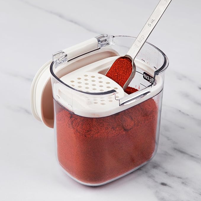 - Accessory-Rich for Smart Storage – Comes with built-in magnetic tools like a leveling bar, measuring/dusting spoon, and removable terra cotta tamper to keep brown sugar soft. All accessories store neatly under each lid for space-saving efficiency.