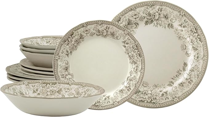 - UNIQUE DESIGNS: 12-piece round porcelain dinnerware set with attractive designs for 4. Includes 4 of each: 10.2-inch dinner plate, 8.1-inch salad plate, 9.2-inch soup bowl,