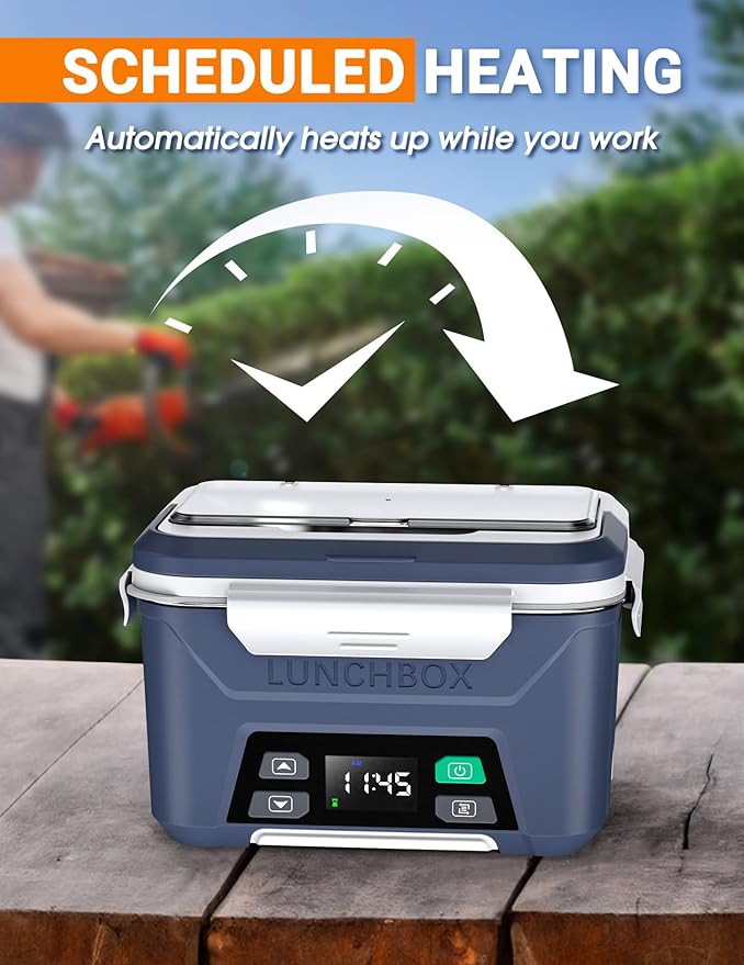 - SMART LUNCH BOX: Simply set the time you want to eat, and let our hot lunch box for adults handle the rest! Thanks to its smart timing feature, the heated lunch box will automatically start warming your food in advance, so you can enjoy a steaming hot meal right when you're ready