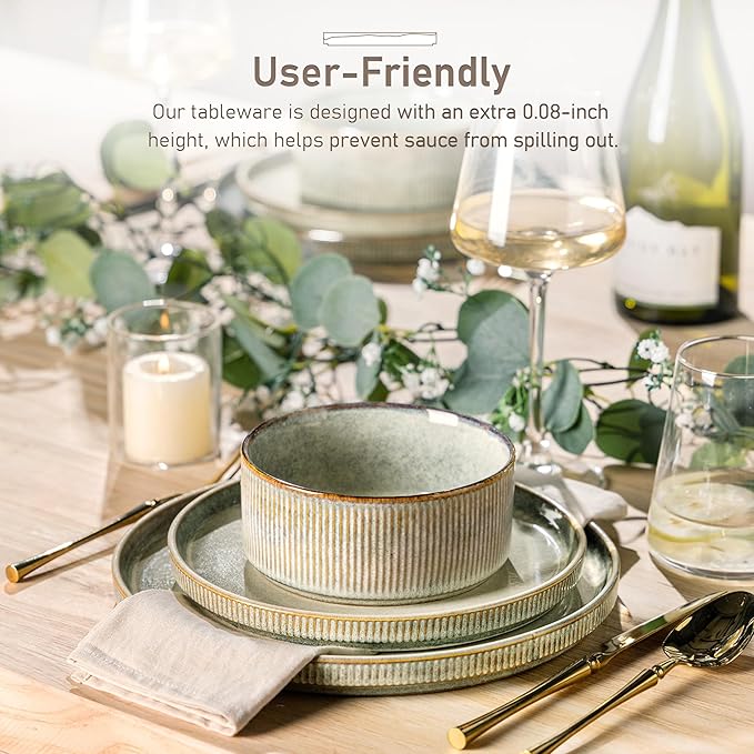 - Healthy, Lead & Cadmium-Free:Crafted from premium organic natural clay and double-fired, this stoneware dinnerware set is free from lead and cadmium—ensuring no harmful chemicals ever leach into your food. Durable and chip-resistant, it’s made to withstand everyday use while staying beautiful year after year.
