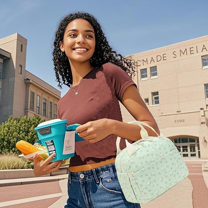 - Spacious and Lightweight✿Lunch bag women measures L10.6 x W 6.3 x H 8.6inches, 0.38 pounds,Lunch tote bag for girls is spacious enough to fit your lunch box. Insulated Cooler with perfect standard size can keep your food cool or warm. Allow your food to be fresh and delicious.