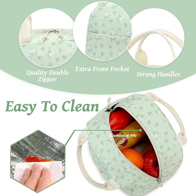 - Multifunctional Design✿Insulated lunch box Cooler made of durable padded handle which ensure long time uses and easy to carry.Large front pocket design is very convenient for you to put your bus cards, keys, phone, and other small items. So you can use it as a lunch cooler bag, shopping bag, picnic bag, and make-up bag for adults,teachers, women, men, nurses, ladies, etc.