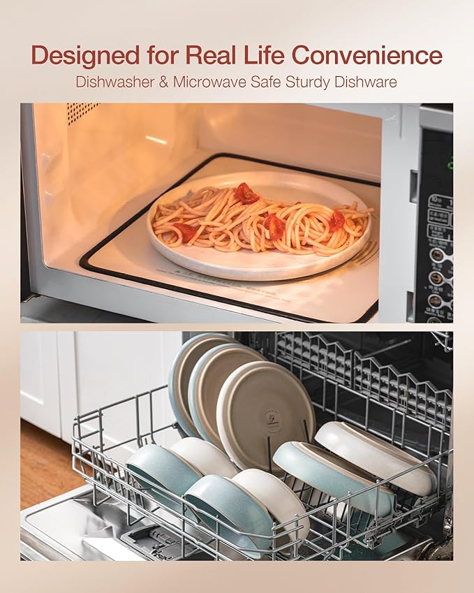 - WITHSTAND THE TEST OF TIME - Made from organic and natural clay, these dish sets are fired at 2340 °F for 13.5 hours, resulting in a sturdy, long-lasting, and chip-resistant product designed for long-term use.