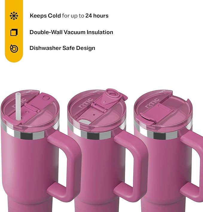 RTIC 30 oz Road Trip Tumbler Double-Walled Ceramic Lined InsulatedStainless Steel Portable Travel Coffee Mug Cup with Lid, Handle and Straw, Orchid