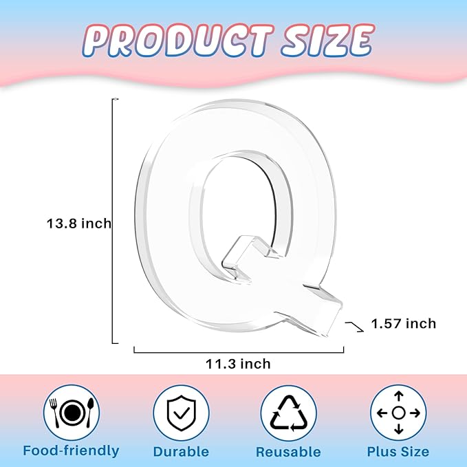 11" Acrylic Letter Charcuterie Box, Reusable Fillable Alphabet Number Shaped Form Tray for Birthday Anniversaries, Party Decorative Serving Plates Display Candy Cake (Q)