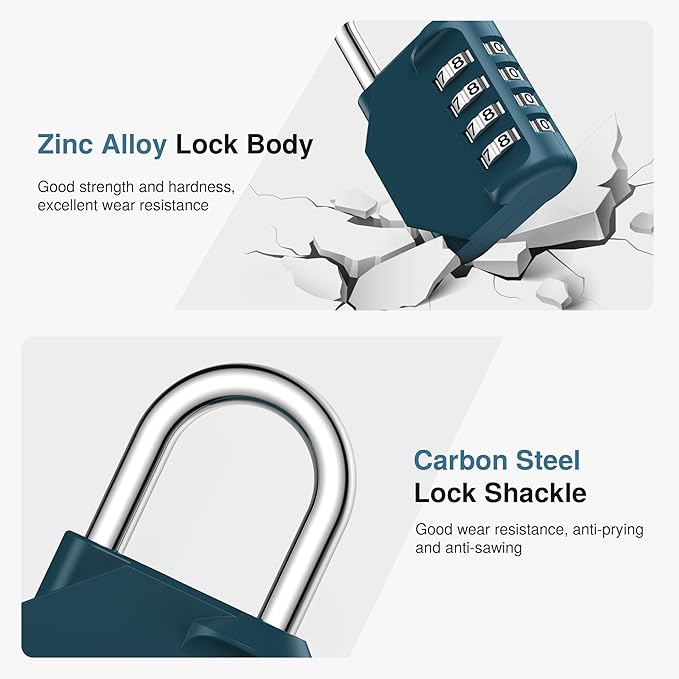 - Built to Last: This heavy-duty lock comes with a high-strength zinc alloy body for maximum durability, resisting sawing, prying, and hammering. Its rust-proof and corrosion-resistant design ensures long-lasting performance for both indoor and outdoor use.