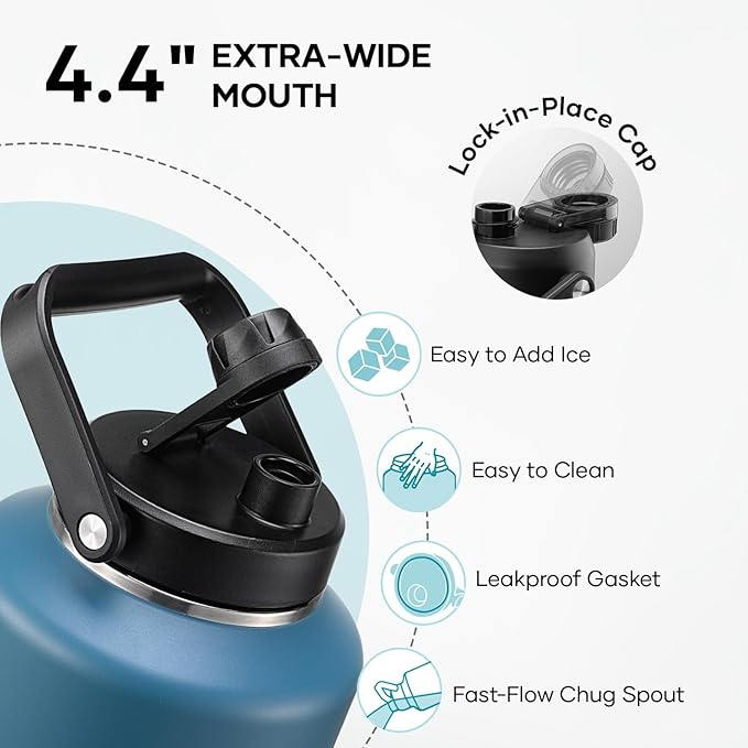 - Ice-Cold For Days: With our ThermoArmour technology and triple-layer vacuum insulation, our gallon water bottles lock in chill for 48+ hours and keep drinks hot for 24+ hours. Pro tip: the bigger the bottle, the more ice it holds, and the longer it stays cold