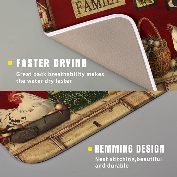 - 【WILD USAGE】-- This rustic rooster dish rack mat captures drips from under the dish rack.you can also place pots, pans, dishes, cups and bottles directly on the mat. As a kitchen counter mat, it Protects countertops and tables from hot pots and pans while protecting other appliances.
