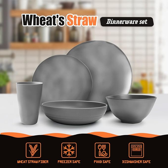 - PACKAGE INCLUDE: This wheat straw dinnerware sets include 40 pieces in total. Bright color bring you a fresh look and make it easy to match your existing flatware.