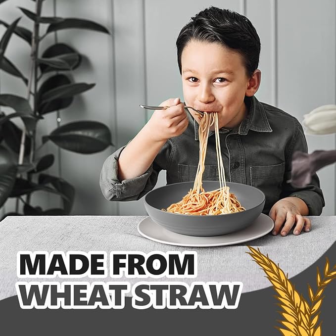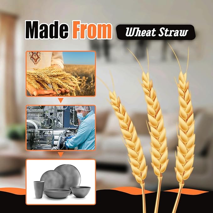 - MATERIAL: Made of wheat straw and plastic material. 100% BPA free. Sturdy, will not break or chip like porcelain or ceramic.