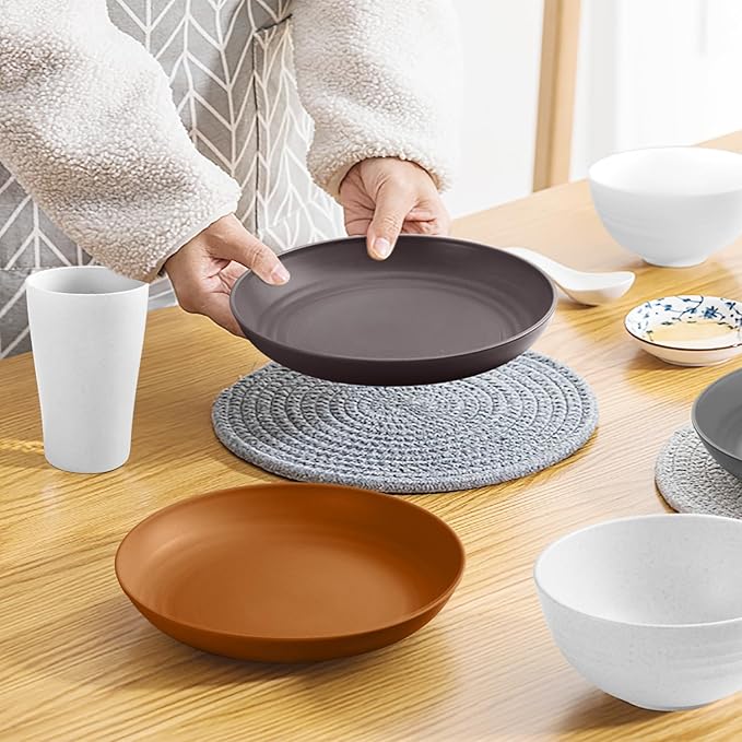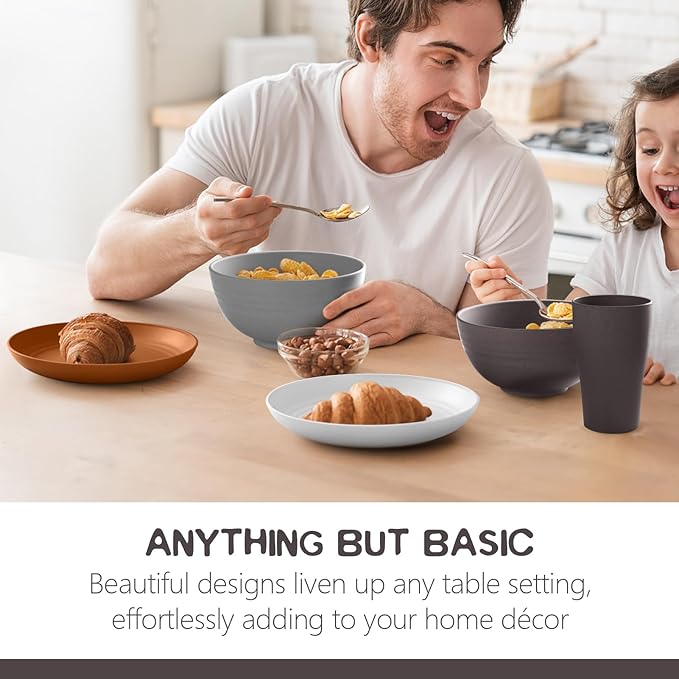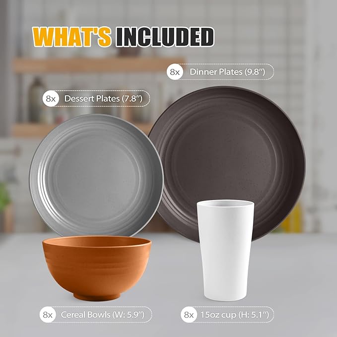 - PACKAGE INCLUDE: This wheat straw dinnerware sets include 32 pieces in total. Easy to match your existing flatware.