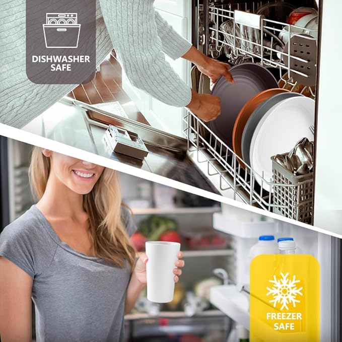 - Freezer & Dishwasher safe: Cleaning up is a breeze as these dinnerware are dishwasher safe. They are also used for store leftovers in the freezer. WARNING: NOT recommend for microwave.