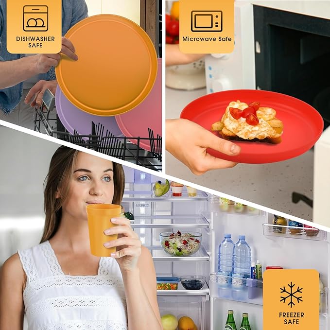 - DISHWASHER SAFE FOR EFFORTLESS CLEANUP | COMPLETE KIDS SET. Less scrubbing, more playing! Top-rack safe. Includes 8x Plates, Bowls, Cups & Cutlery.