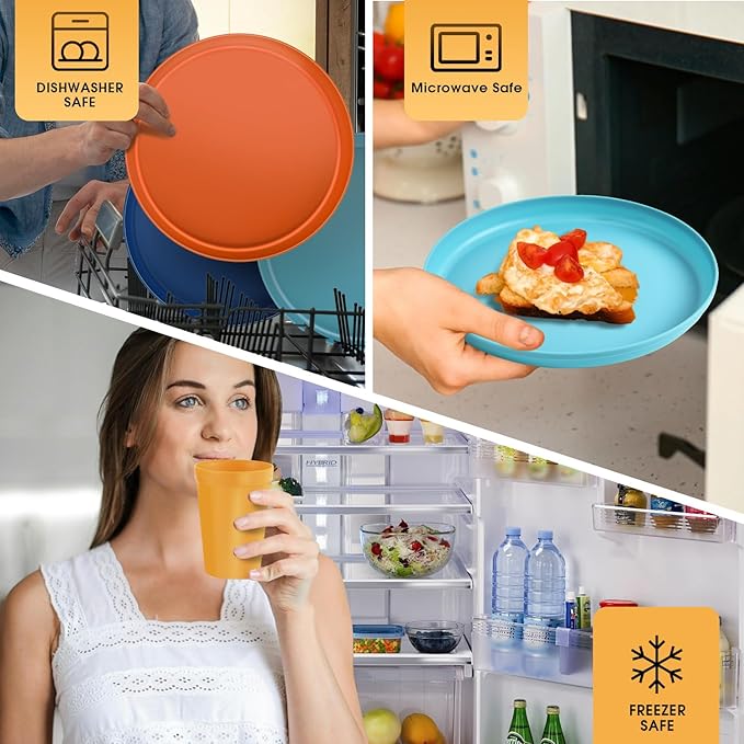 - DISHWASHER SAFE FOR EFFORTLESS CLEANUP | COMPLETE KIDS SET. Less scrubbing, more playing! Top-rack safe. Includes 8x Plates, Bowls, Cups & Cutlery.