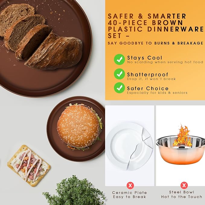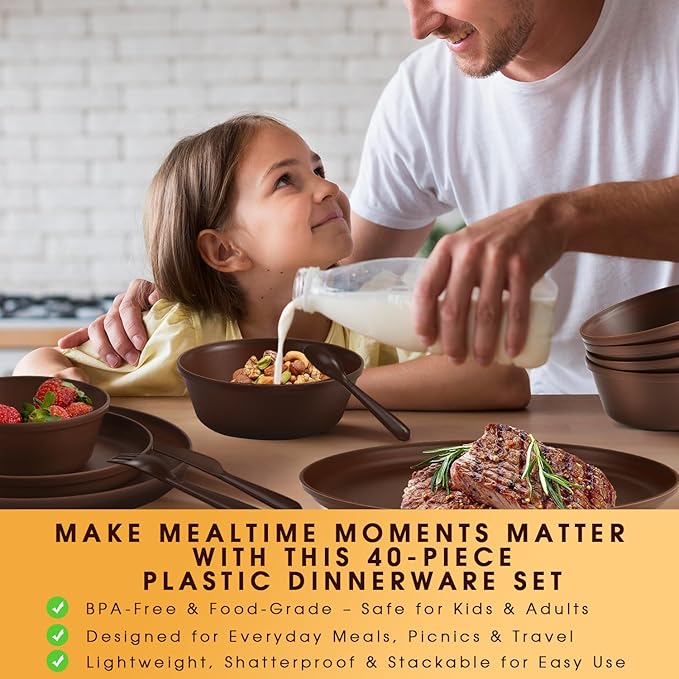 40-Piece Unbreakable Kids Dinnerware Set for Toddlers & Children, BPA-Free & Easy-Clean PP Plates and Bowls, Microwave & Dishwasher Safe, Complete Family Pack (Service for 8)