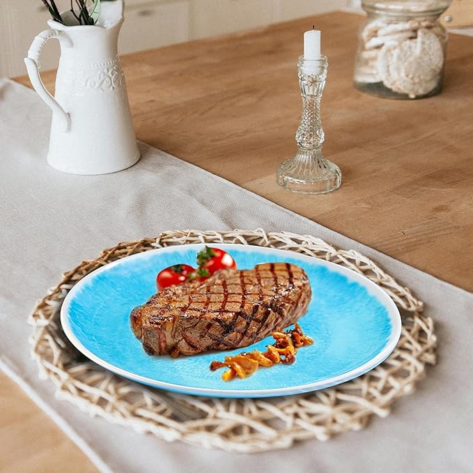 Melamine Dinnerware Sets 12 Pcs, Melamine Plates and Bowls,Party Plates and Bowls Sets, Camping Dishes Set for 4, Unbreakable, BPA Free, Dishwasher Safe (Lake blue)