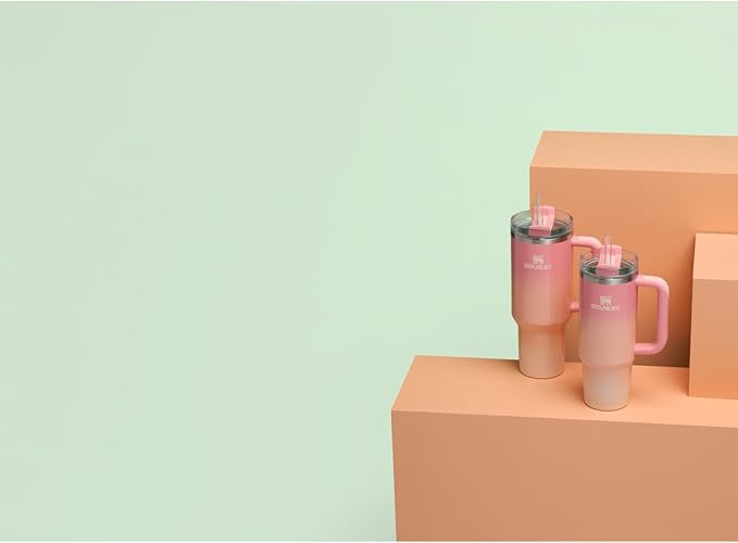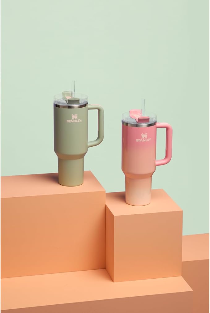 STANLEY Quencher H2.0 Tumbler with Handle and Straw 40 oz | Flowstate 3-Position Lid | Cup Holder Compatible for Travel | Insulated Stainless Steel Cup | BPA-Free | Pink Mesa Sunset