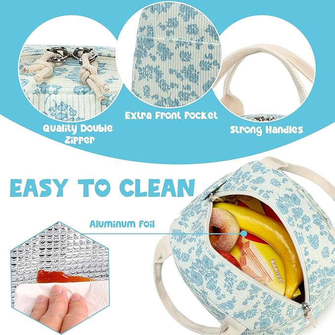 Bluboon Lunch Bag for Women Men Cute Corduroy Lunch Tote Bags Reusable Insulated Lunch Box Large Capacity Reusable Insulated Cooler for Work Picnic or Travel