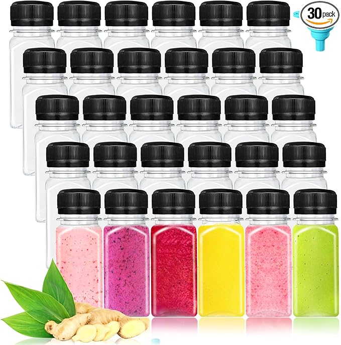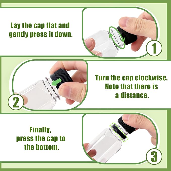 - 【Leak-proof and Reusable】Equipped with a black tamper evident cap,the bottle has excellent sealing performance,which can prevent the juice from leaking,maintain its freshness,and make its storage time longer.These empty juice bottles are easy to clean and can be reused many times.