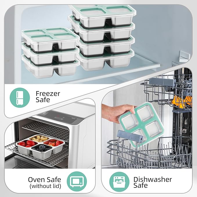 - 【Dishwasher,Freezer Safe】: Easy to clean, heat, and store in your freezer, these lightweight containers serve as both a meal prep set or reusable lunch containers. Plus, each container nests neatly together to save you space in your pantry.