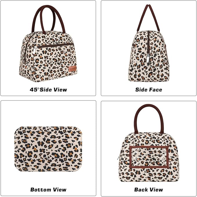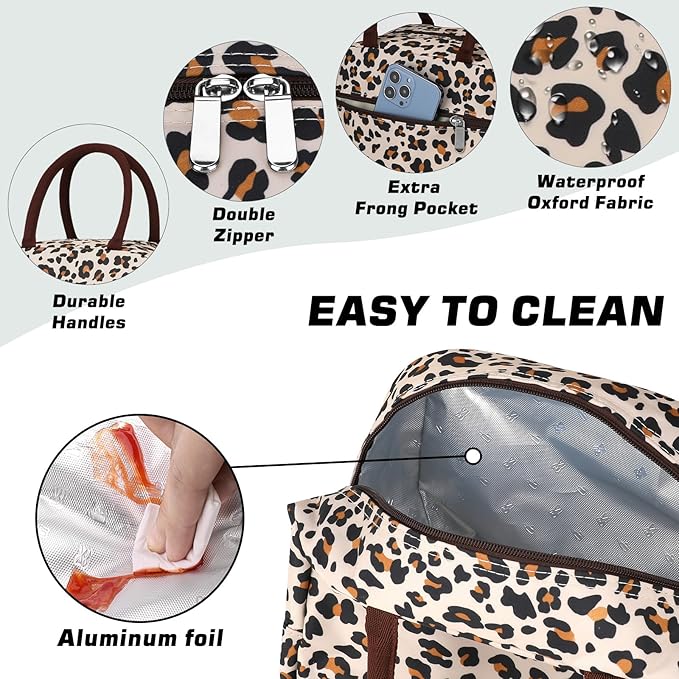 BALORAY Lunch Bag for Women Men Cute Reusable Insulated Lunch Box Large Capacity Lunch Tote Bag for Work, Picnic or Travel (Zipper Leopard)