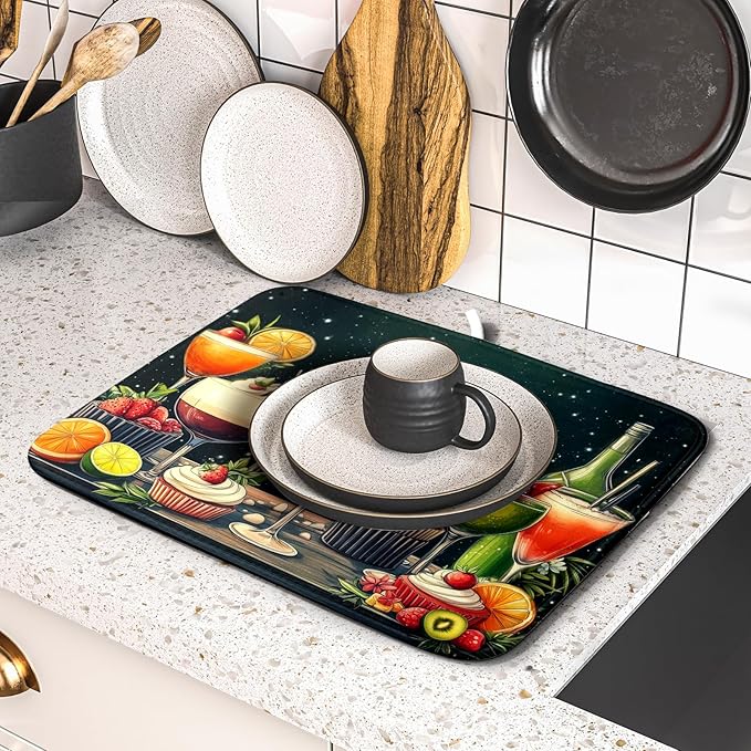 Wine Glass Dish Drying Mat - Summer Party Absorbent Microfiber Kitchen Drying Pad 16 X 18 Inch