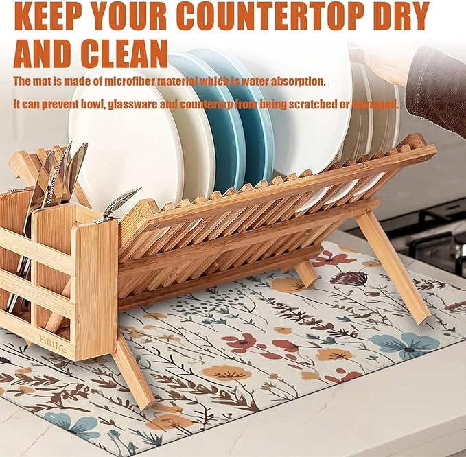 - 【Easy to Clean】The utensil drying mat can be cleaned by hand or machine to remove stains, the kitchen utensil drying mat to dry quickly without a machine. HD printed suede has excellent color lock, does not fade and can be reused many times.