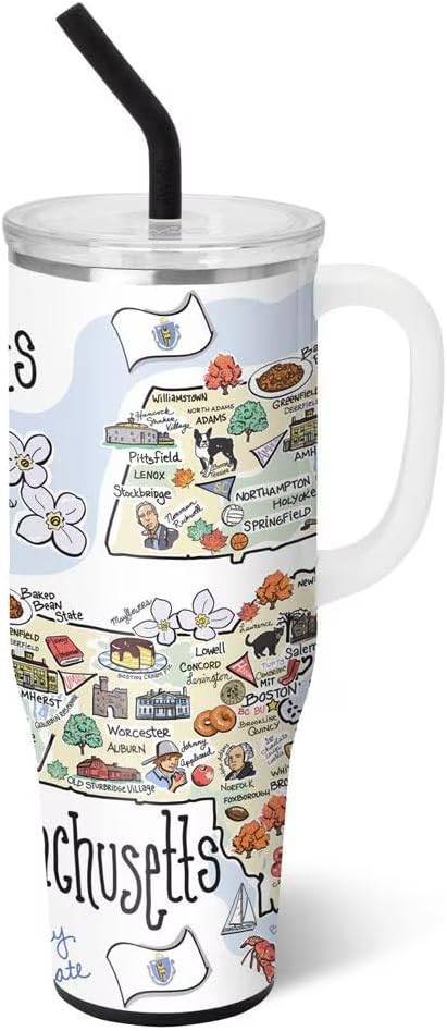 Swig Life 40oz Mega Mug, 40oz Tumbler with Handle and Straw, Extra Large Insulated Tumblers, Cup Holder Friendly Travel Mug (Massachusetts)