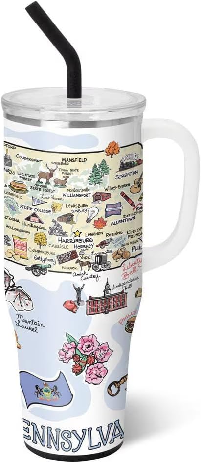 Swig Life 40oz Mega Mug, 40oz Tumbler with Handle and Straw, Extra Large Insulated Tumblers, Cup Holder Friendly Travel Mug (Pennsylvania)