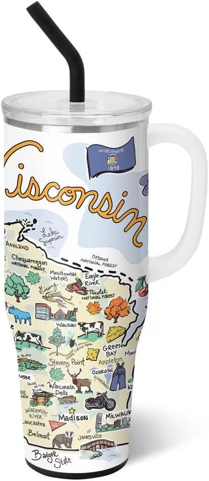 Swig Life 40oz Mega Mug, 40oz Tumbler with Handle and Straw, Extra Large Insulated Tumblers, Cup Holder Friendly Travel Mug (Wisconsin)