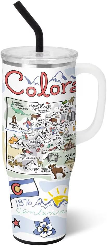 Swig Life 40oz Mega Mug, 40oz Tumbler with Handle and Straw, Extra Large Insulated Tumblers, Cup Holder Friendly Travel Mug (Colorado)
