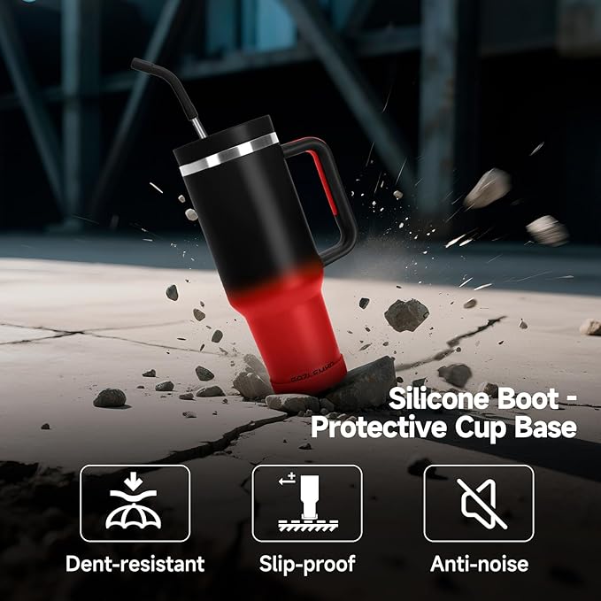 - Cup Holder Friendly Traveler Mug: This 40 oz insulated tumbler features a T-shape (narrow base) design to fit most car cup holders, making it the ultimate travel companion. No more struggling to fit oversized cups in your car! And the package include a silicone boot to prevent the cup slipping and to protect the bottom of the cup