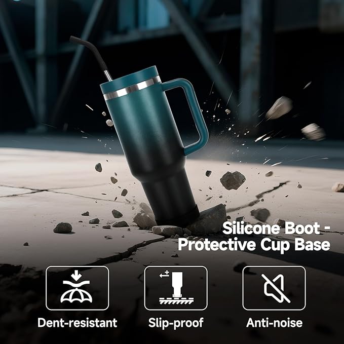 - Cup Holder Friendly Traveler Mug: This 40 oz insulated tumbler features a T-shape (narrow base) design to fit most car cup holders, making it the ultimate travel companion. No more struggling to fit oversized cups in your car! And the package include a silicone boot to prevent the cup slipping and to protect the bottom of the cup