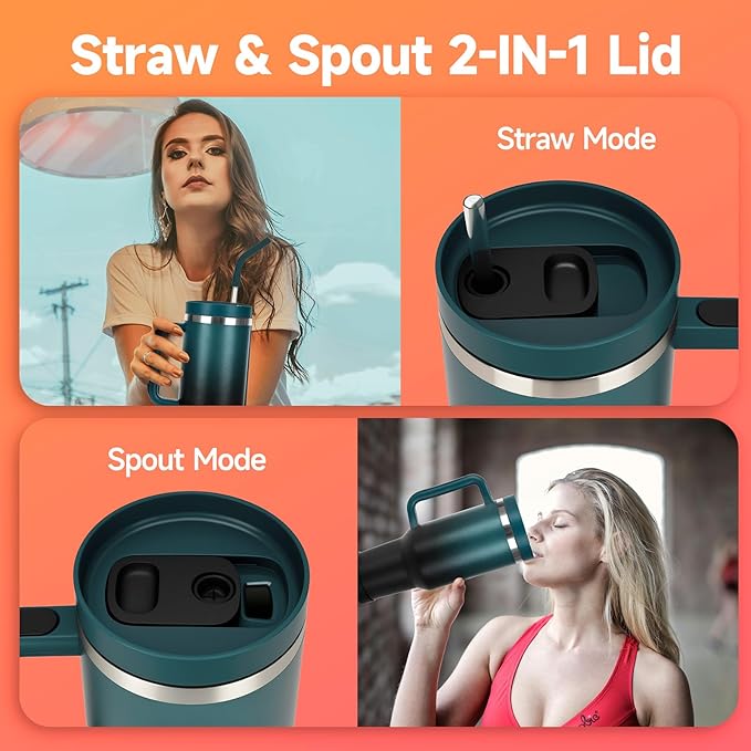 - Straw or Spout 2-in-1 Screw-in Lid: The thickened screw-in lid, upgraded 2-in-1 slider, and silicone sealing ring work together to create an ultra-airtight seal. Whether shaken or on the go, this travel cup stays 100% spill-proof. Plus, the secure seal locks in temperature, keeping your drinks hot and cold longer
