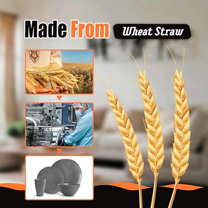 - PACKAGE INCLUDE: This wheat straw dinnerware sets include 32 pieces in total. Easy to match your existing flatware.