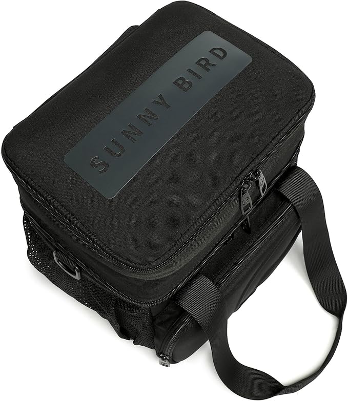 SUNNY BIRD Dual Compartment Lunch Bag, 13L Insulated Adult Lunch Box for Work (Black)