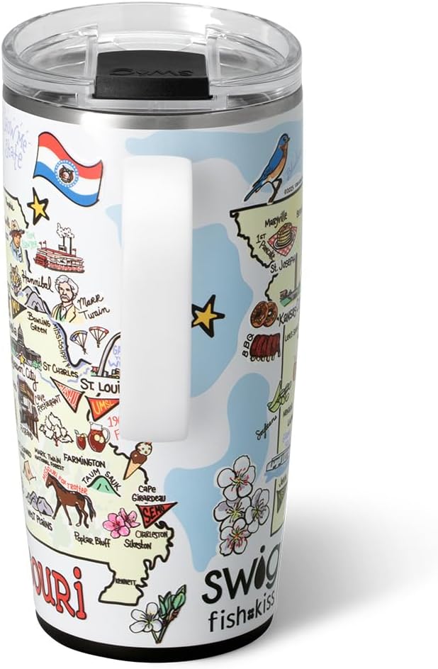 Swig Life 22oz Travel Mug, Insulated Tumbler with Handle and Lid, Travel Coffee Mug, Cup Holder Friendly, Stainless Steel 22 oz Tumbler, Reusable Insulated with Lid (Missouri)