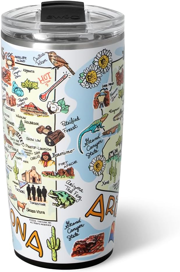 Swig Life 22oz Travel Mug, Insulated Tumbler with Handle and Lid, Travel Coffee Mug, Cup Holder Friendly, Stainless Steel 22 oz Tumbler, Reusable Insulated with Lid (Arizona)