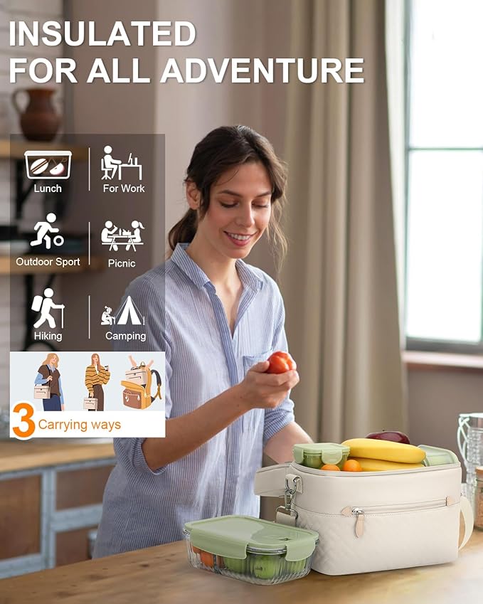 - 【Upgrade Insulated & Leak-proof & Sweat-Free Material】4-layer insulation system, the waterproof polyester outer adds abrasion protection, thick 3mm EPE foam insulation helps to prevent heat transfer, durable 210D liner lowers the risk of tearing, and a heat-pressed PEVA interior is leakproof and wipes clean in seconds—no more worries about spills or stains. Every layer is crafted for max performance. Whether you're packing hot soup or cold drinks, your food stays just the way you like it