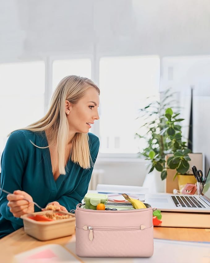 Capolo Lunch Box for Women Men Adults,Insulated Lunch Bag Leakproof Lunch Cooler Box with Removable Strap Cute Lunch Tote Bags Reusable Thermal Lunchbox for School Work Picnic(Small,Pink)