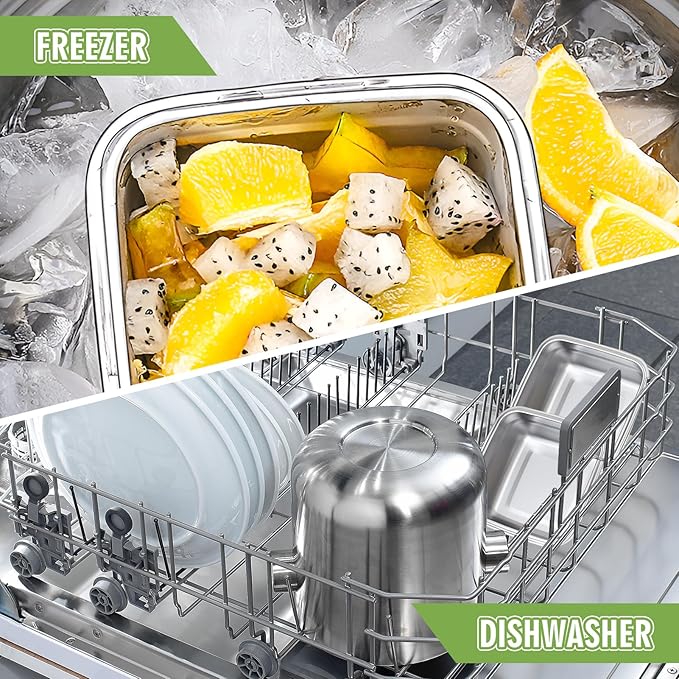 - 【Premium 304 Stainless Steel】Crafted from high-quality, food-grade 304 stainless steel, these containers are rust-resistant, non-toxic, and built to last. They preserve the natural taste of your food without absorbing odors or stains, ensuring every meal is fresh, clean, and healthy.