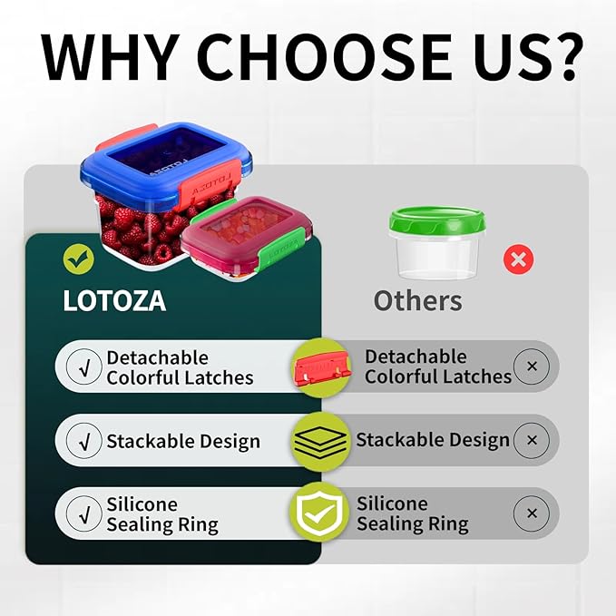 - Categorized by 2 Colors and Visibly Transparent:Transparent square and rectangular bodies with colorful lids for instant content recognition.Space-Saving Stackable Design,Modular containers nest neatly, saving 70% cabinet space