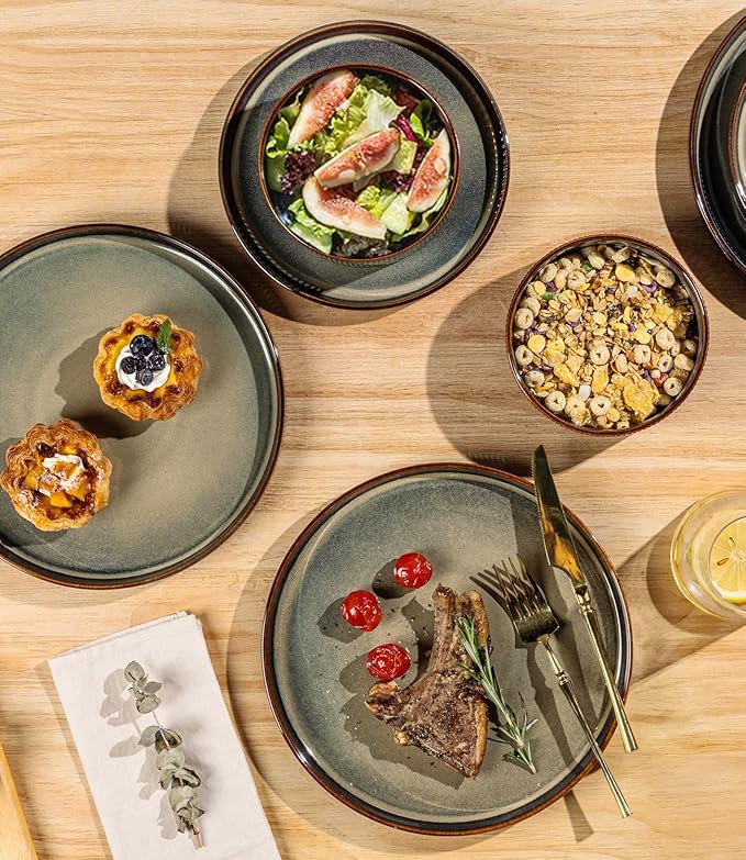 - SAFE TO USE AND DURABLE: Unlike many ceramic products, our dinnerware is made with completely lead-free and cadmium-free glazes. Each piece is fired at a high temperature of 2340℉ for 13 hours, making the set durable and heat-resistant. It is safe for use in the oven, microwave, and other kitchen appliances.
