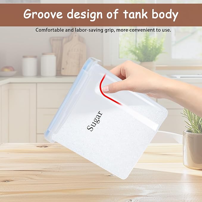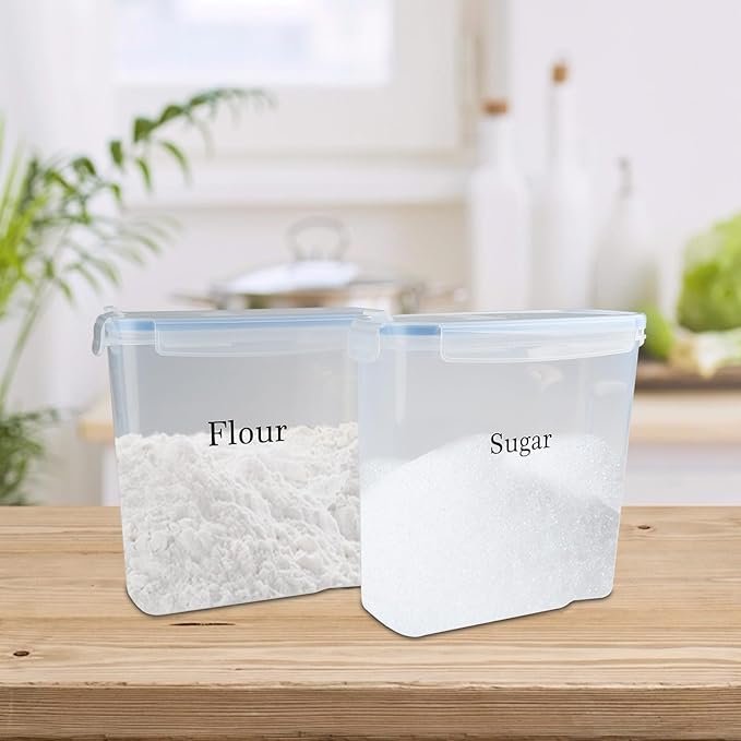 - AIRTIGHT AND EASY ACCESS: Each flour sugar storage containers features a 4-sided snap locking lid with a silicone seal for freshness, alongside an extra secure flap for easy access to your stored food. Ideal for cereal container storage, these flour and sugar storage containers set keep your food fresh and accessible.