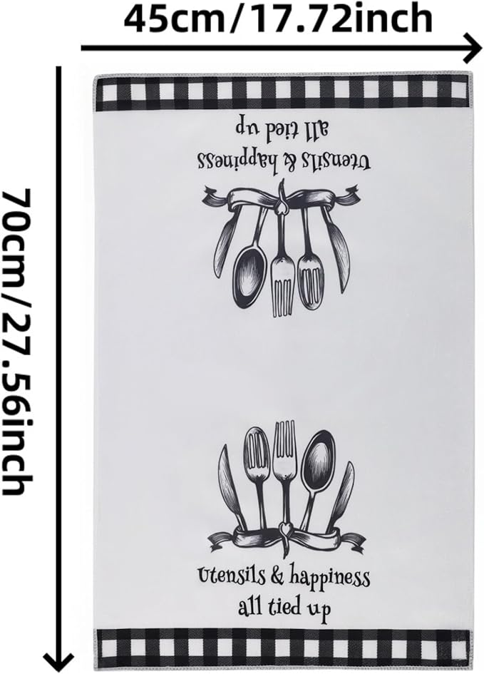 - Stylish Decorative Kitchen Towels: Enhance your kitchen aesthetic with these chic black kitchen towels featuring a classic utensil print; They serve as both decorative kitchen towels and practical accessories, seamlessly blending style with everyday function